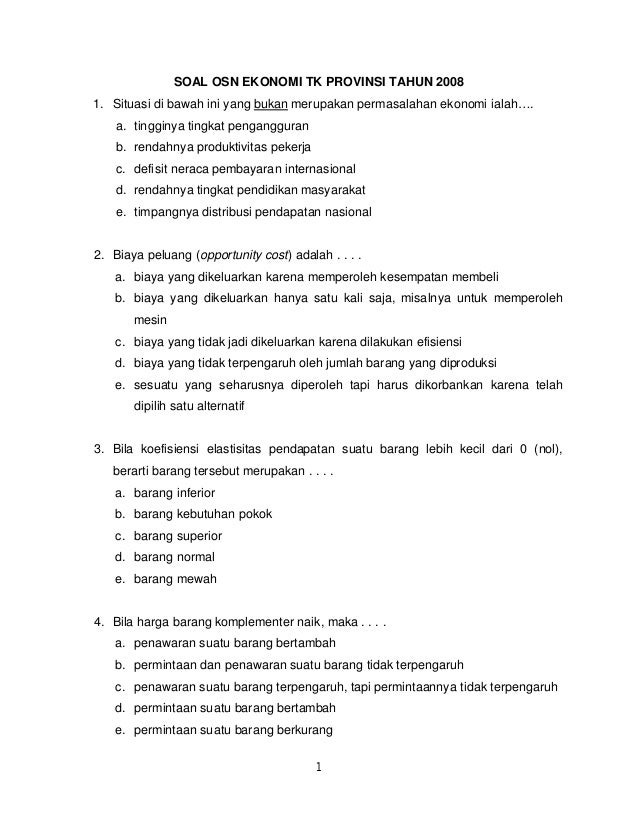 Bagi adek adek yang sedang membutuhkan soal olimpiade sains nasional tingkat provinsi bidang ekonomi dapat mendownload soal tersebut dalam file pdf pada bagian bawah soal ini nantinya. Pembahasan soal osp / osn provinsi 2019 no. Soal osp ekonomi tahun 2019 dan kunci jawaban soal olimpiade sains nasional tingkat provinsi bidang ekonomi tahun 2019. Diposting oleh urip rukim kategori. May 09, 2019 · osn ekonomi sma tahun 2019. Dibawah ini adalah kumpulan soal sekaligus jawaban pembahasan osn sma bidang ekonomi baik itu osk, osp maupun osn nasional yang akan selalu di update oleh blog tomata likuang. # semua soal dibawah merupakan hasil scan sendiri dari soal hard copy yang didapatkan dan diedit agar terlihat rapi. Dec 31, 2019 · pembahasan soal osk ekonomi 2019: Pada kesempatan kali ini, blog tomatalikuang.com akan membagikan soal osk osp osn sma tahun 2019 dan pembahasan untuk 9 bidang yang. Jul 04, 2017 · download soal & pembahasan osk osp osn ekonomi sma lengkap. Direktorat pembinaan sekolah menengah atas, direktorat jenderal pendidikan dasar. Diantara berbagai upaya pemerintah untuk mengurangi kemacetan adalah dengan "pembangunan mrt dan lrt".